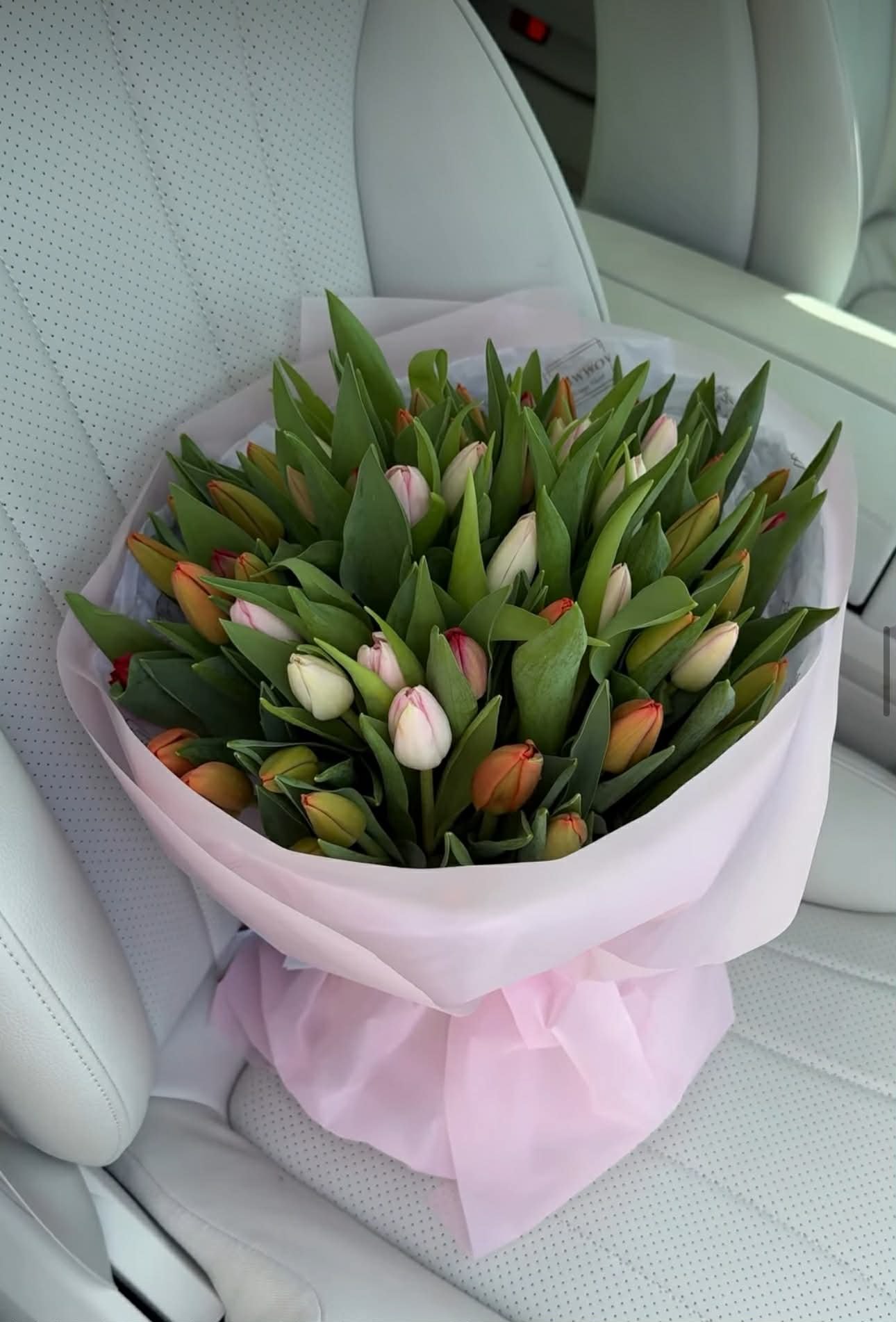 Gaivi ir elegantiška tulpių puokštė, sudaryta iš švelnių rožinių, baltų ir oranžinių žiedų. Kruopščiai atrinktos tulpės dar tik pradeda skleistis, todėl ilgiau džiugins savo grožiu ir natūraliu žydėjimu.