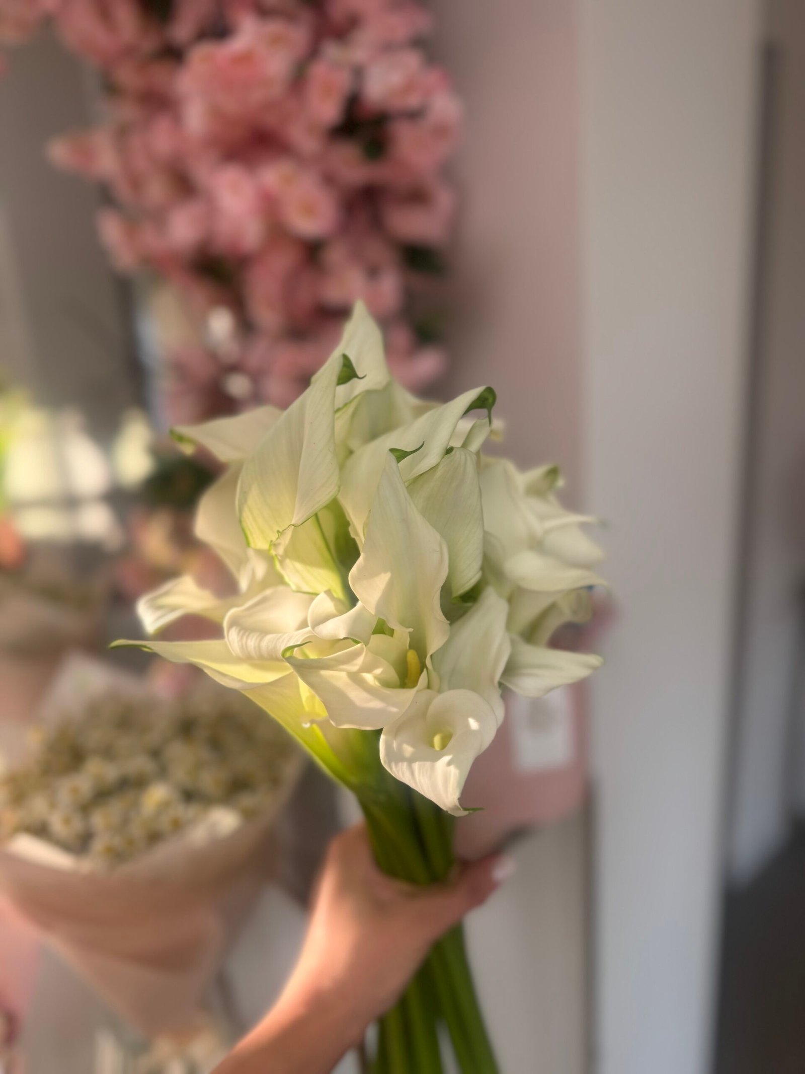 Nuotakos puokštė ” Bijūnines rožės su gipsofilu”
