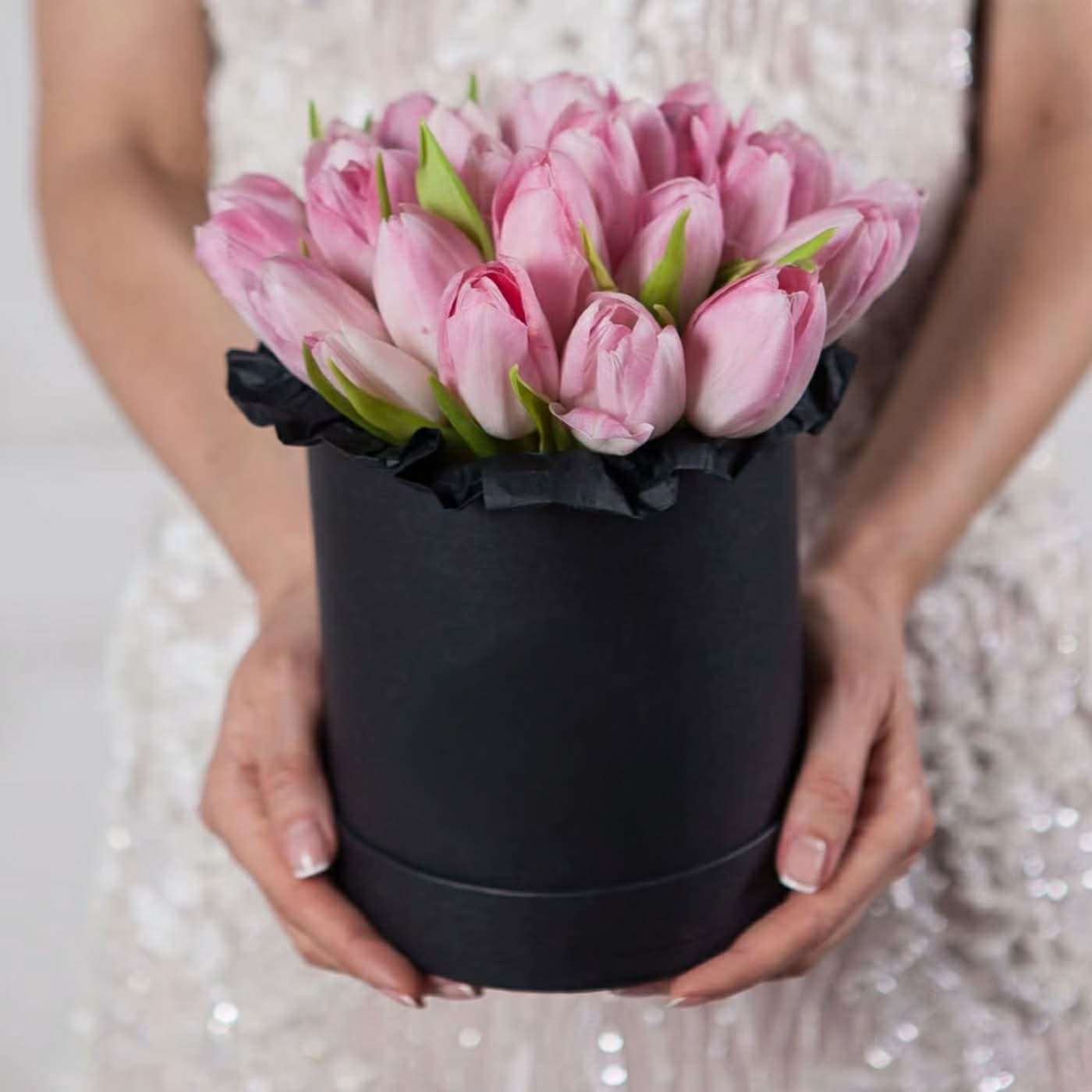 Subtili rožinių tulpių kompozicija stilingoje juodoje dėžutėje – elegantiška ir šiuolaikiška dovana bet kokia proga. Švelnūs tulpių žiedai simbolizuoja meilę, šilumą ir pavasarišką gaivą. Puikiai tinka gimtadieniui, šventei, padėkai ar tiesiog norint pradžiuginti artimą žmogų.